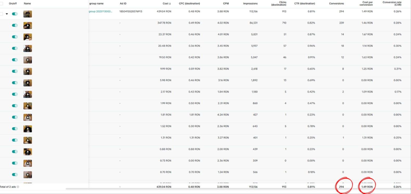 ⚪Cost / conversie - 32.52 lei